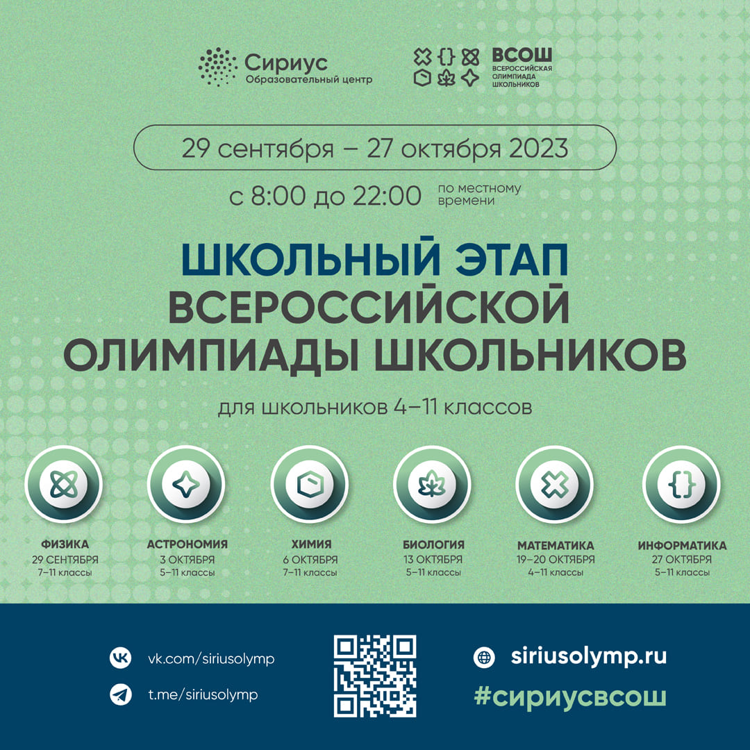 С 29 сентября проводится школьный этап ВсОШ для 4-11 классов